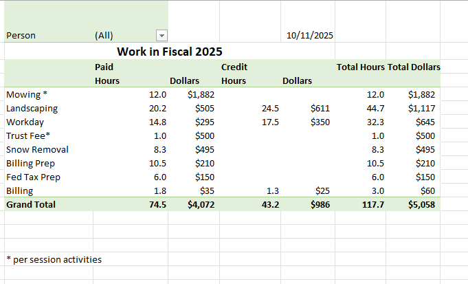 One other note, the PayPal online Billing capability was used 5 times in the 2025 billing cycle, it was relatively painless from the Trust side, I don’t expect it to change for next year. This QR Code will point you to PayPal for the Tree Tops Account, if used please add 3% to cover the PayPal fees.