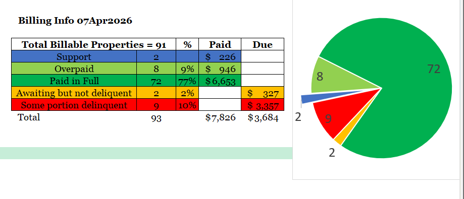 March 15, 2026, overdue billing deadline has arrived, I did send out reminder notices to the 18 households that hadn’t yet responded to the initial January 1 mailing.